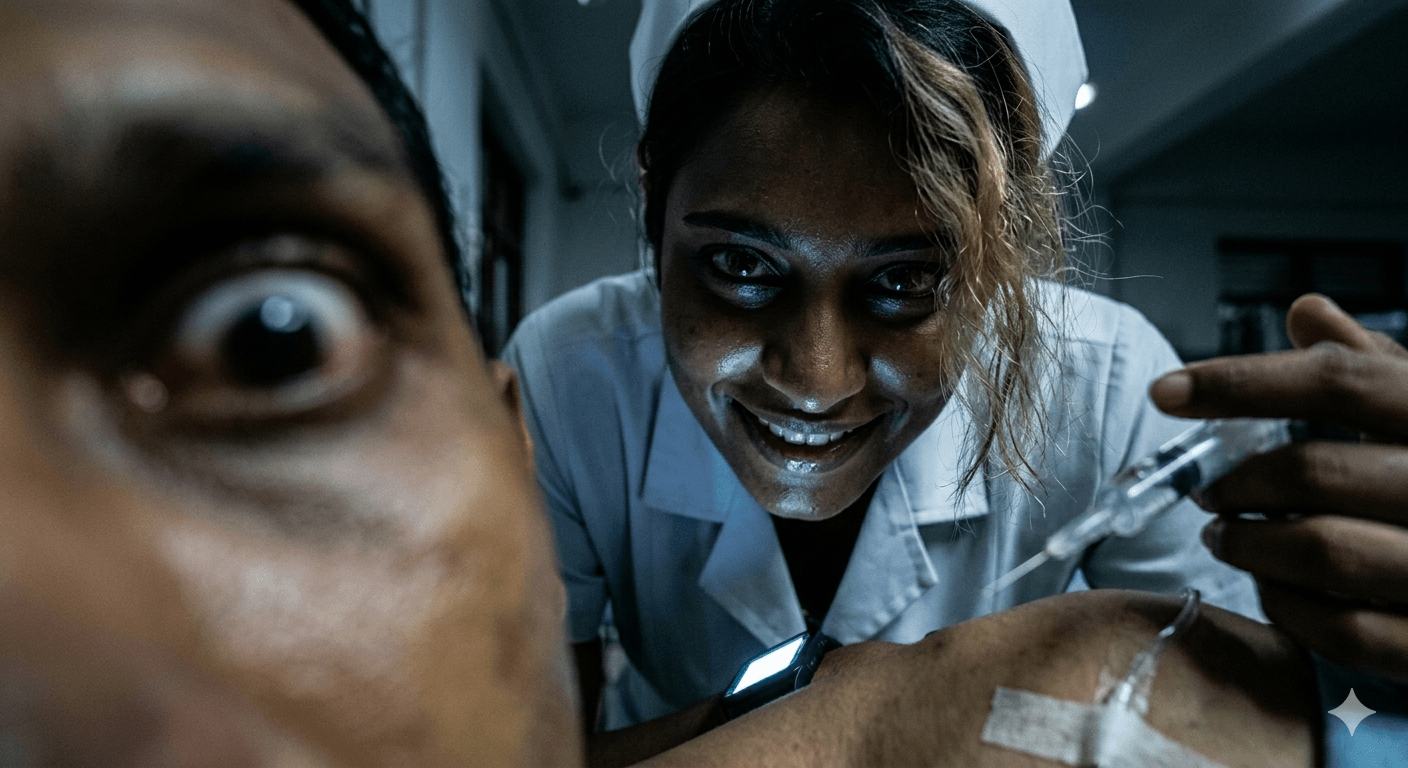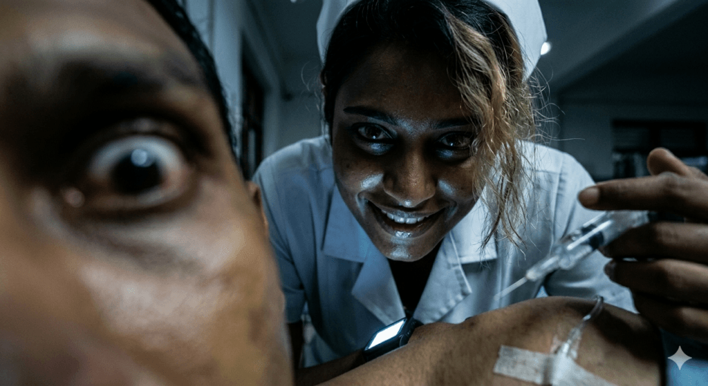 “කෑගැහුවොත්… මේ බෙහෙත් ටික කෙලින්ම ඔයාගේ ලේ නහරයට යනවා, මහේෂ්. එතකොට ඔයාට සිද්ධ වෙන්නේ සද්ද නැතුවම මෙලොව අතහැරලා යන්න,” ඇය ඉතා සන්සුන්ව, මිමිනුම් හඬින් කීවාය.