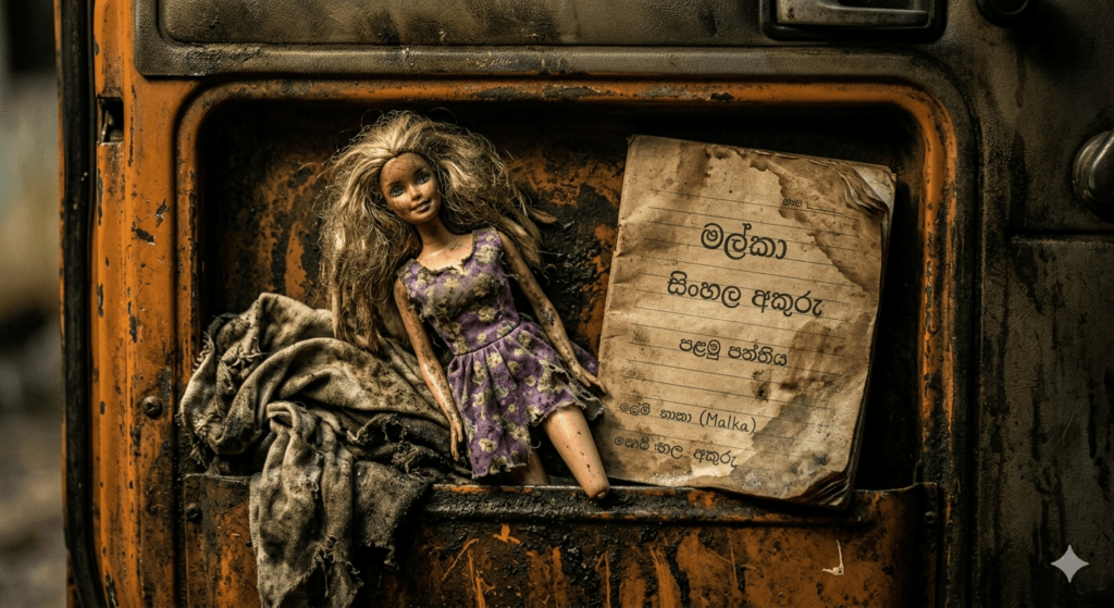 එවිටම මහේෂ්ගේ දෑස දොර අයිනේ තිබූ කුඩා ලාච්චුව වෙත යොමු විය. ඔහුගේ ඇඟ ලොමුදැහැ ගැන්වී ගියේය. එහි තිබුණේ කකුලක් කැඩුණු, කෙස් අවුල් වූ බාර්බි බෝනික්කෙකි. ඒ අසලම මඩ තැවරුණු ළමා අභ්යාස පොතක් ද විය. මීට මාසයකට පෙර මේ ප්රදේශයේ අතුරුදහන් වූ අට හැවිරිදි දැරිය ගැන මුළු රටම කතා කළේය. රූපවාහිනියේ පෙන්වූයේද මෙවැනිම බෝනික්කෙකු අතැතිව සිටි දැරියකගේ ඡායාරූපයකි.